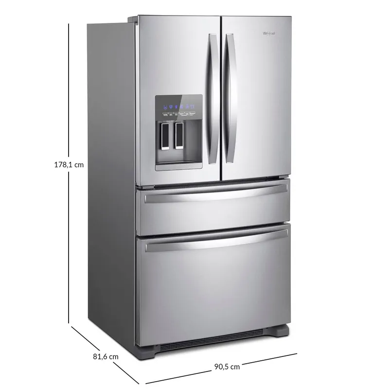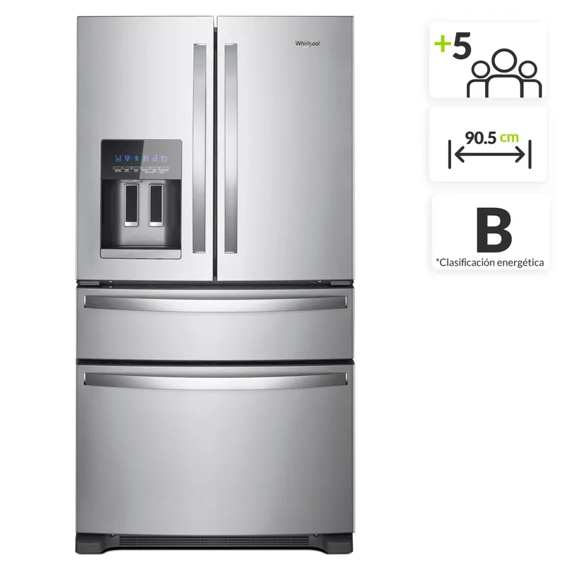 Nevec贸n WHIRLPOOL en formato convencional, color silver, sistema sin escarcha, f谩brica de hielo, dispensador de agua autom谩tico, 320 kg de peso. A continuaci贸n las especificaciones del producto: