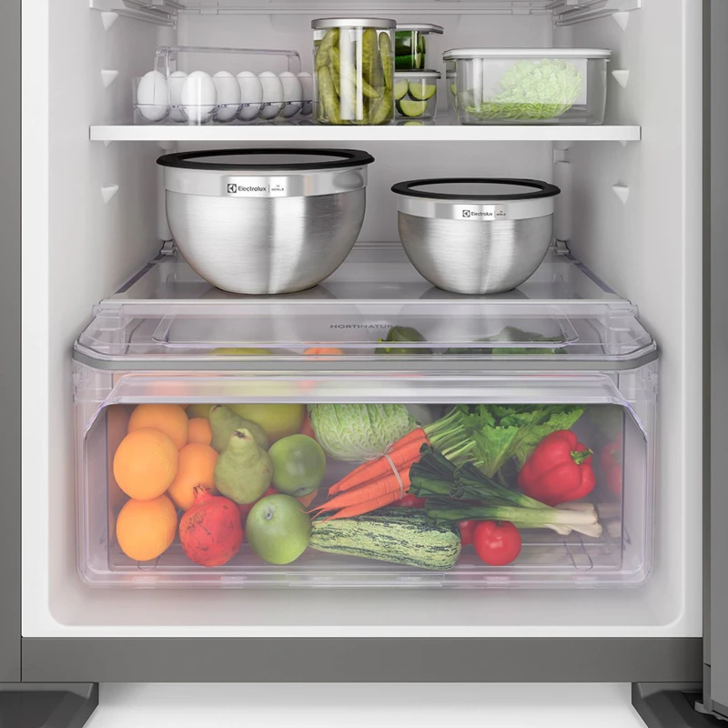 Nevera ELECTROLUX en formato convencional, capacidad 461 lt, sistema sin escarcha, fábrica de hielo, 71 kg de peso. A continuación las especificaciones del producto: